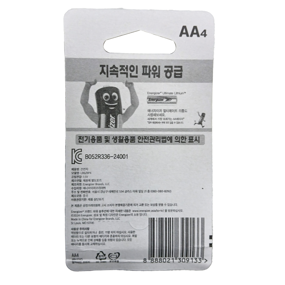 | 제품명 | NEW 에너자이저 AA 4P /알카라인건전지 |