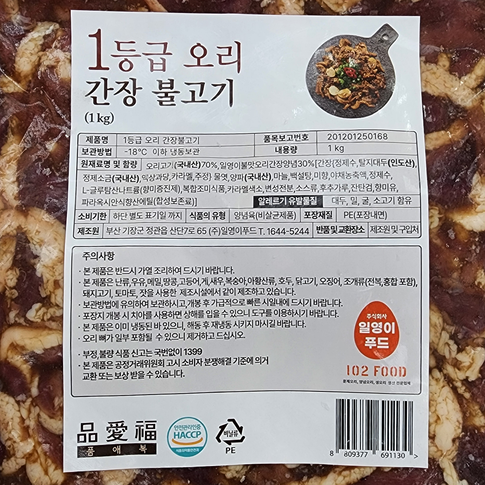 | 제품명 | 1등급 오리 간장 불고기 1kg/일영이푸드 |