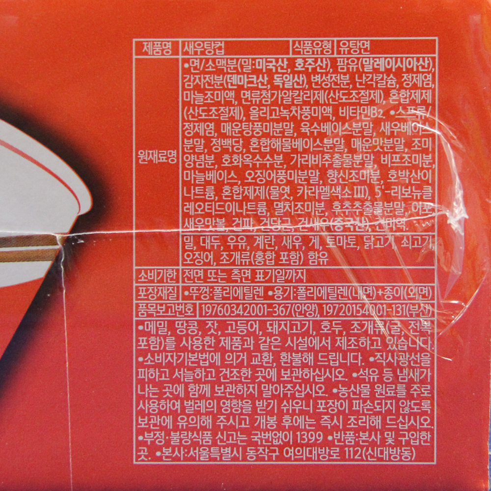 | 제품명 | 새우탕 컵면 67g*6개입/농심 |