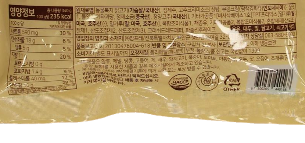| 제품명 | 고추크리미 순살킥 340g/참프레 |