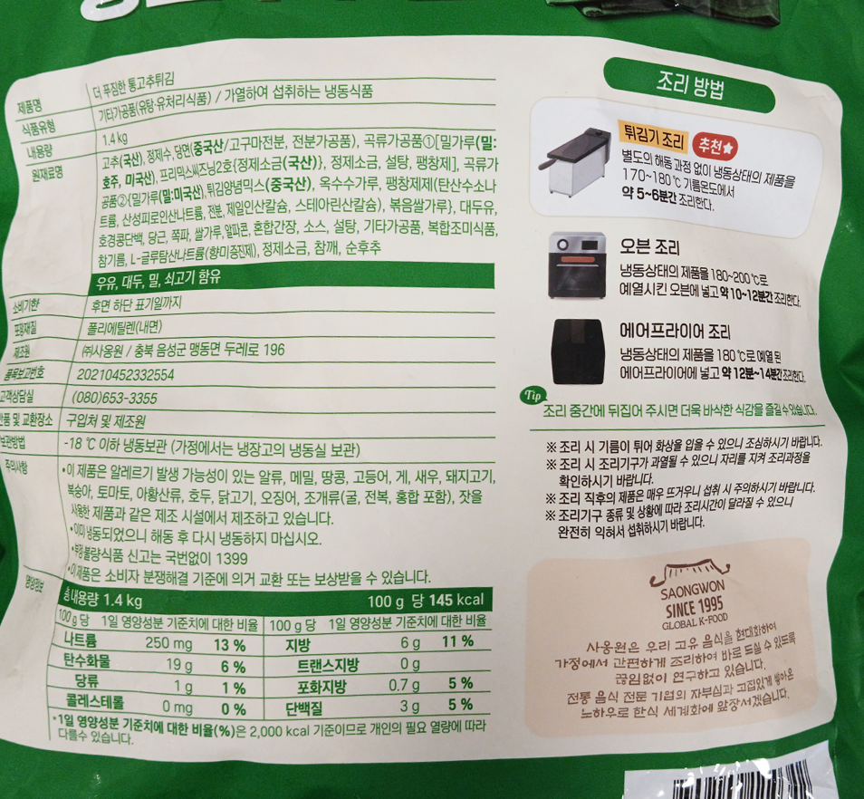 | 제품명 | 더 푸짐한 통고추튀김 1.4kg/사옹원 |