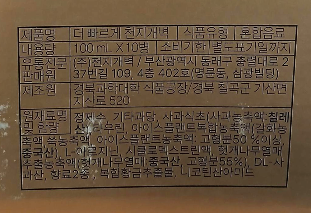 | 제품명 | 더 빠르게 천지개벽 100ml*10개입 |