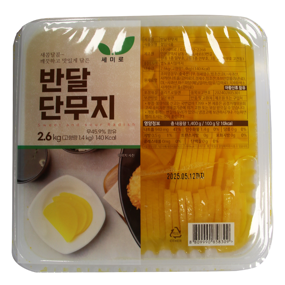 | 제품명 | 반달단무지 2.6kg/세미로 |