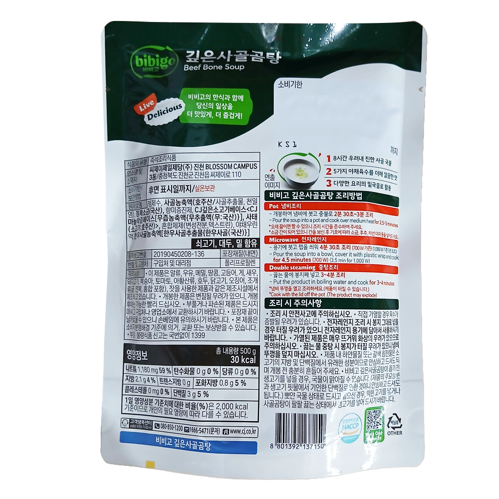 | 제품명 | 비비고 깊은사골곰탕 500g/CJ |