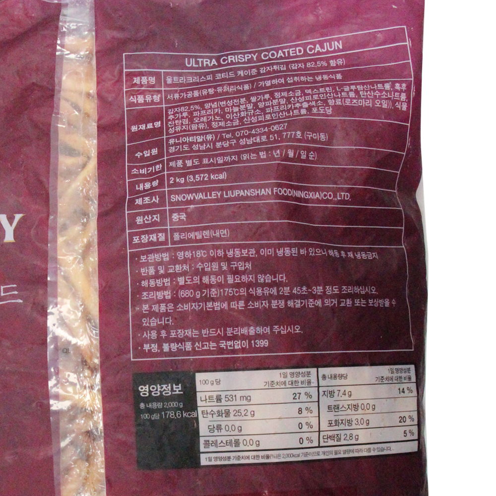 | 제품명 | 웰프리츠) 울트라크리스피 케이준 양념감자 2kg |