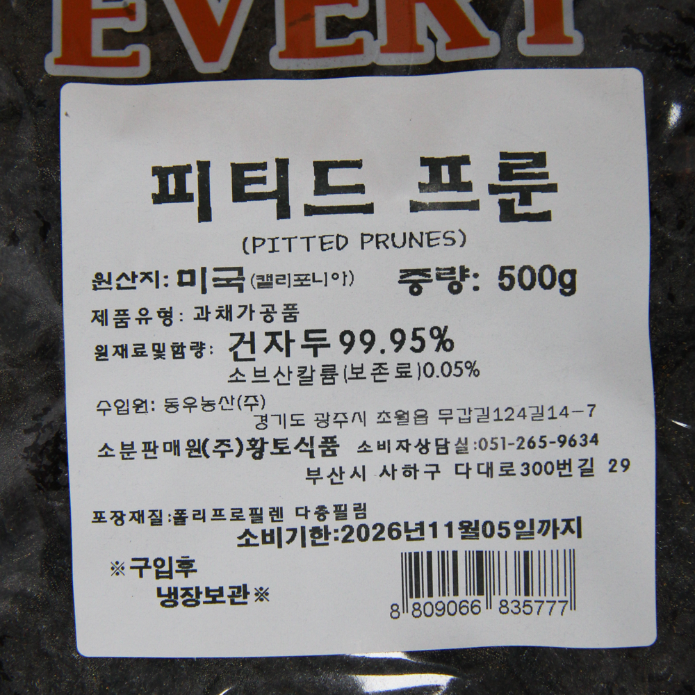 | 원재료명 및 함량(농수산물의 원산지 표시에 관한 법률에 따른 원산지 표시 포함) | 건자두 99.95%,소브산칼륨(보존료)0.05% |