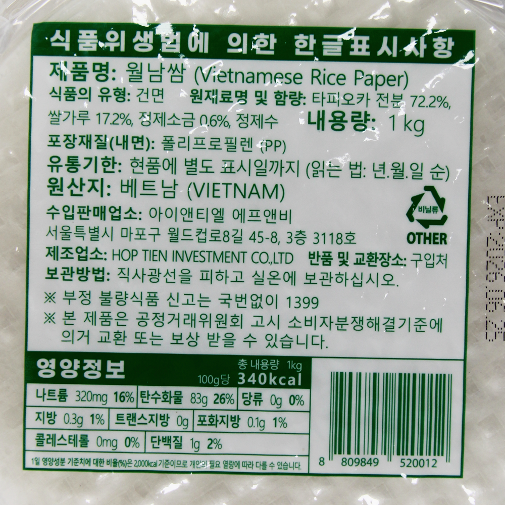 | 제품명 | 월남쌈 1kg/아이앤티엘에프앤비 |