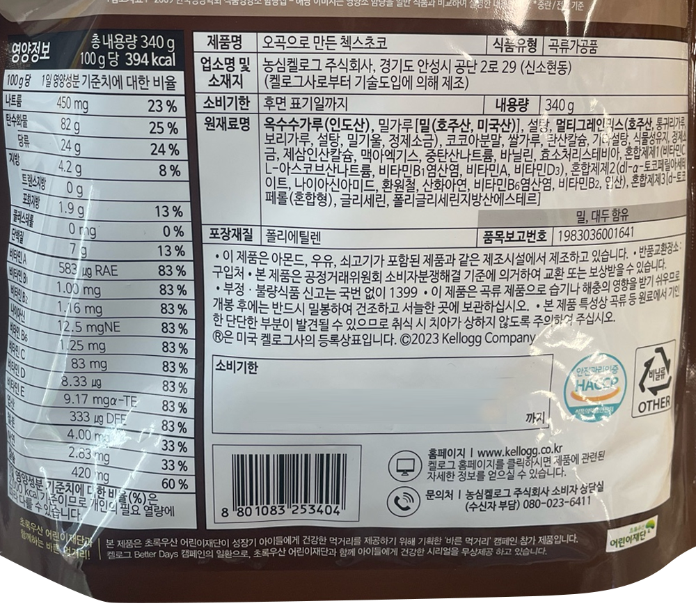 | 제품명 | 오곡으로만든 첵스초코 340g/농심켈로그 |