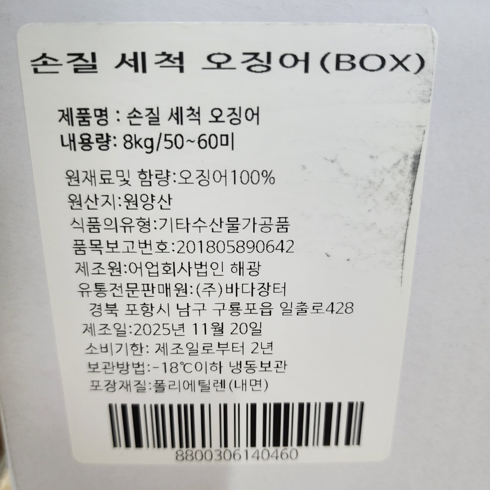 | 품목 또는 명칭 | 손질 세척오징어(50-60미·박스) 8kg/바다장터 |