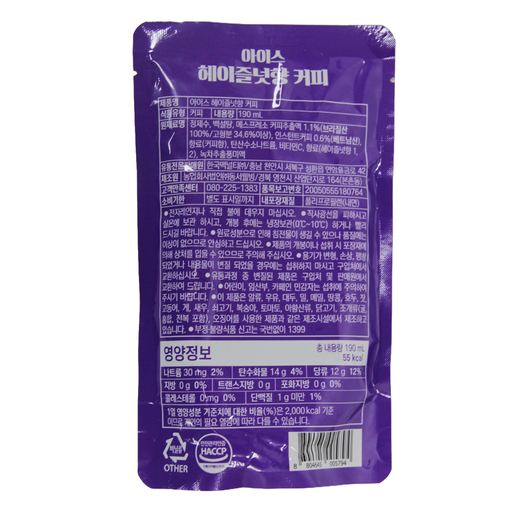 | 제품명 | 맥널티 아이스헤즐넛향커피 190ml/한국맥널티 |