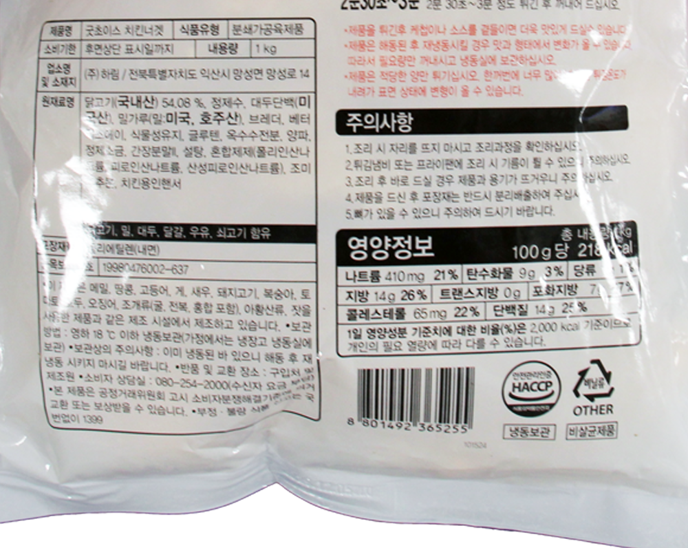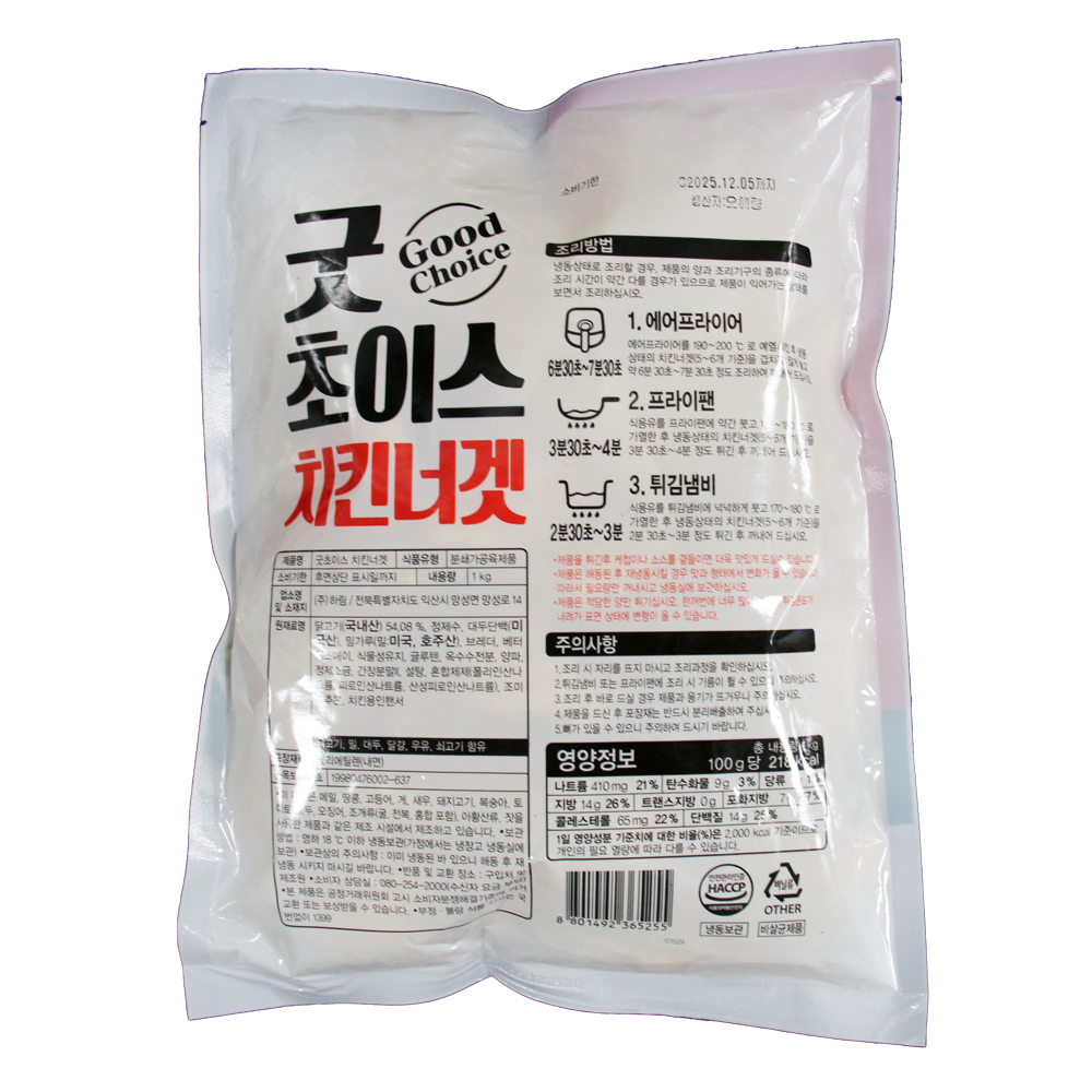 | 제품명 | 굿초이스 치킨너겟 1kg/하림 |