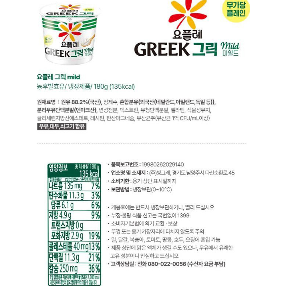 | 제품명 | 빙그레)그릭마일드 무가당180g |