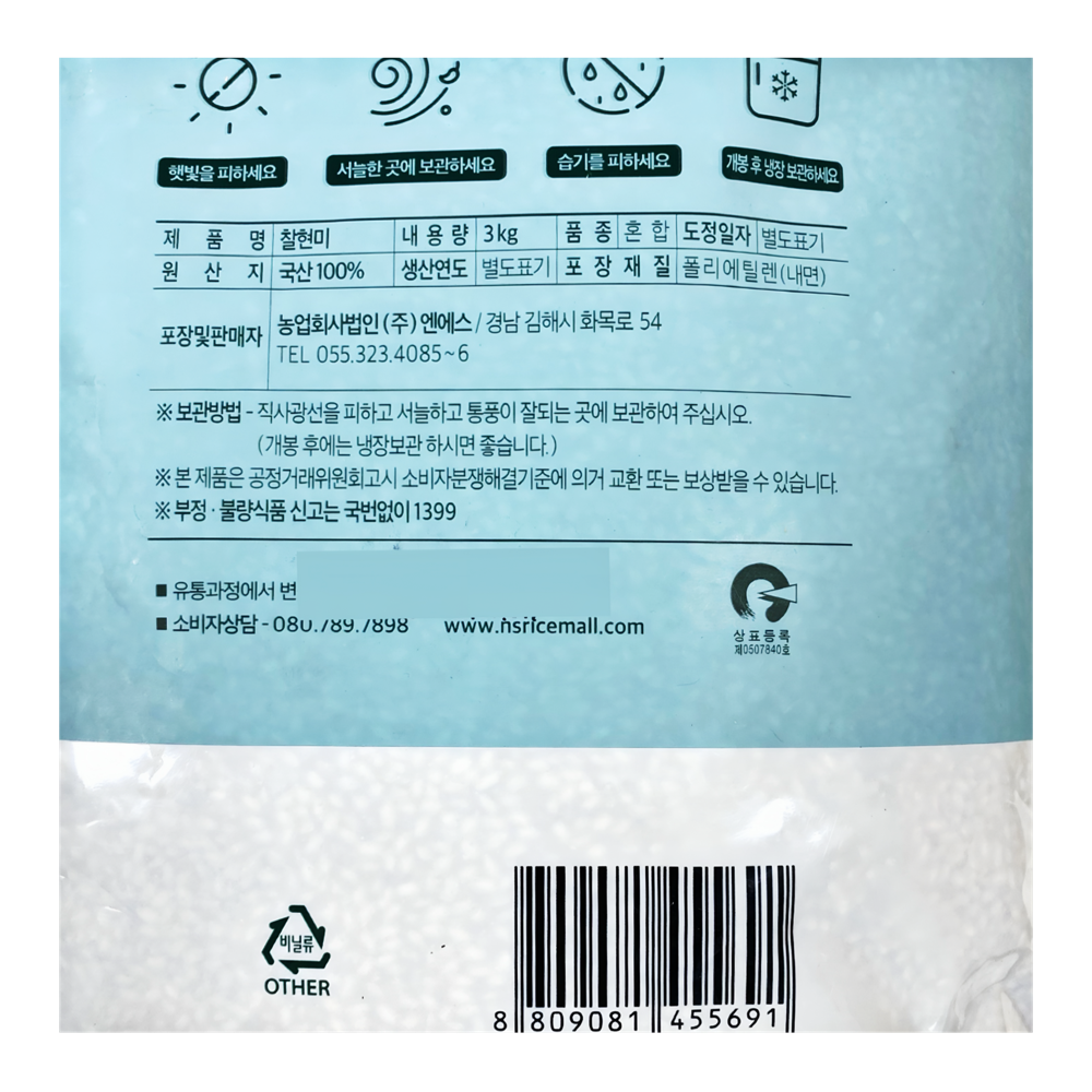 | 품목 또는 명칭 | 찰현미·3kg/엔에스 |
