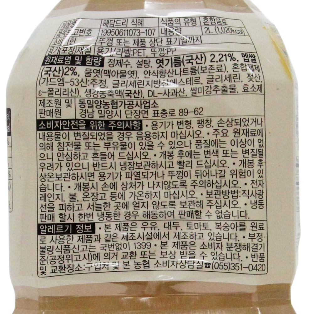 | 제품명 | 해담드리 식혜 2L /동밀양농협 |