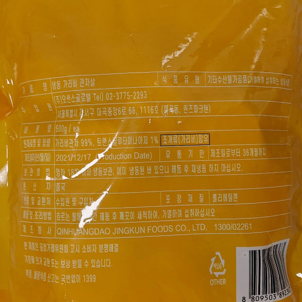 | 품목 또는 명칭 | 냉동 가리비관자살 500g/중국산(오션스G) |