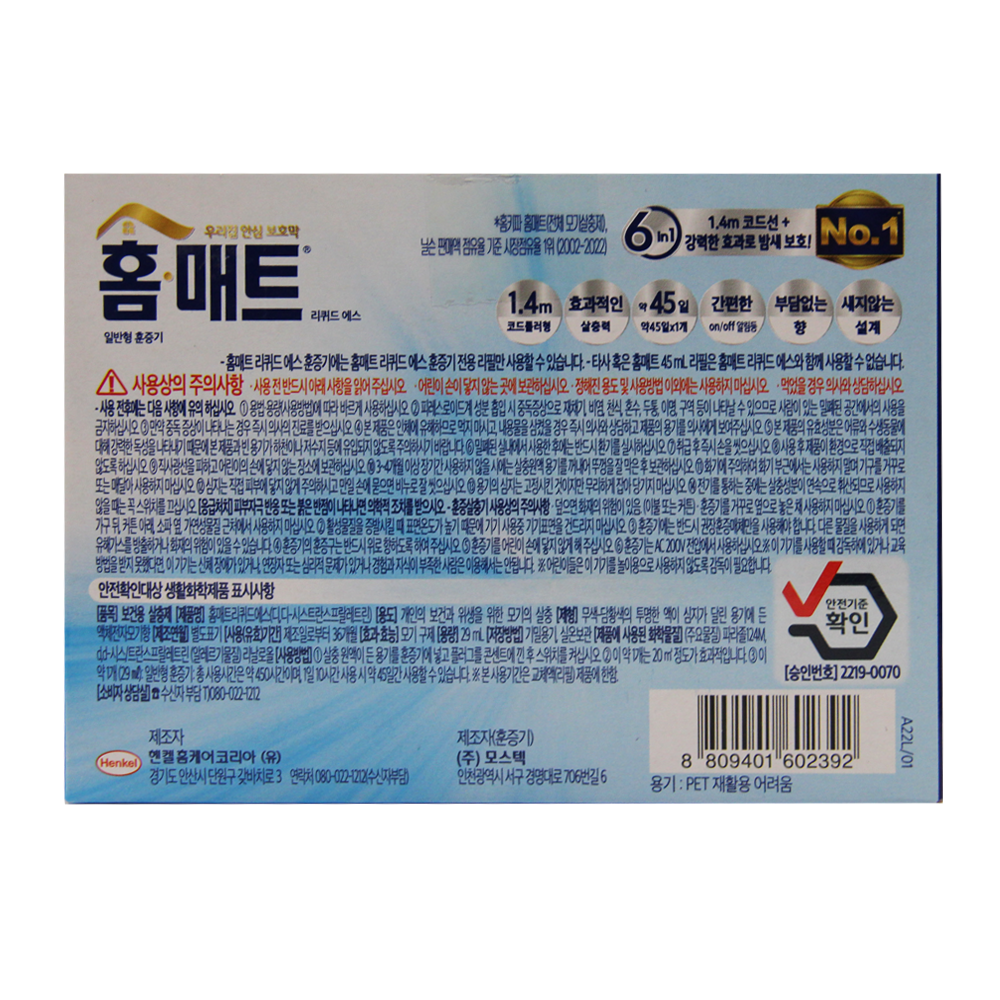| 제품명 | 헨켈) 홈매트 리퀴드에스 훈증기 세트 |