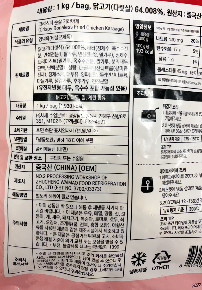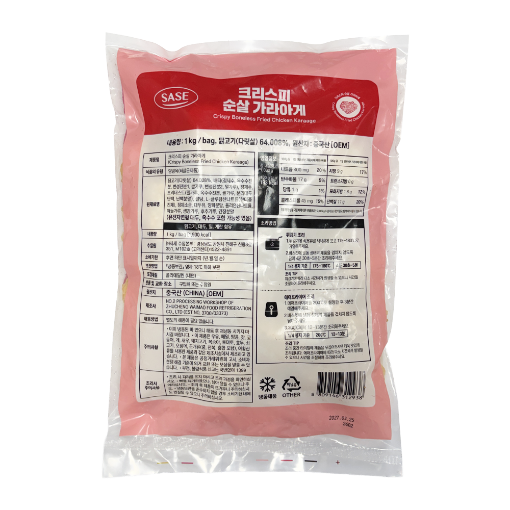 | 제품명 | 크리스피 순살 가라아게 1kg/사세 |