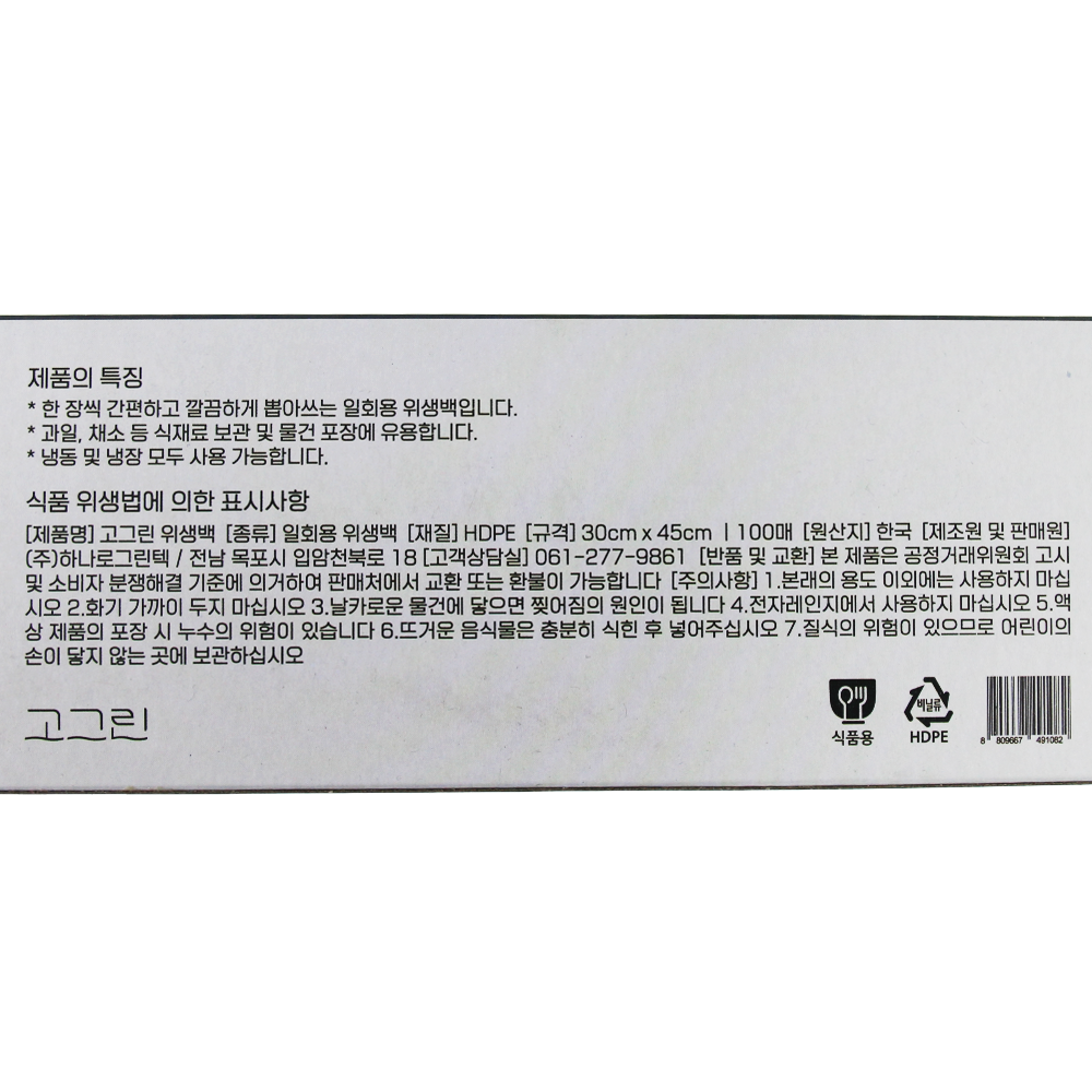 | 제품명 | 고그린 위생백 30*45cm(100매)/하나로그린텍 |