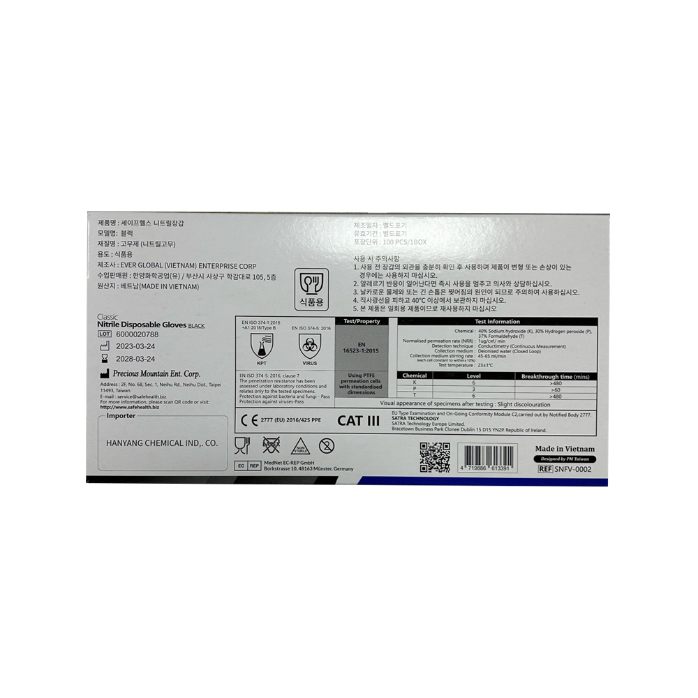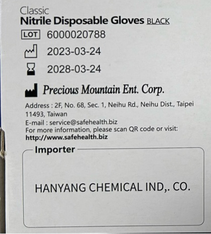 | 제품명 | 세이프헬스 니트릴 장갑 M (블랙) /한양화학 |