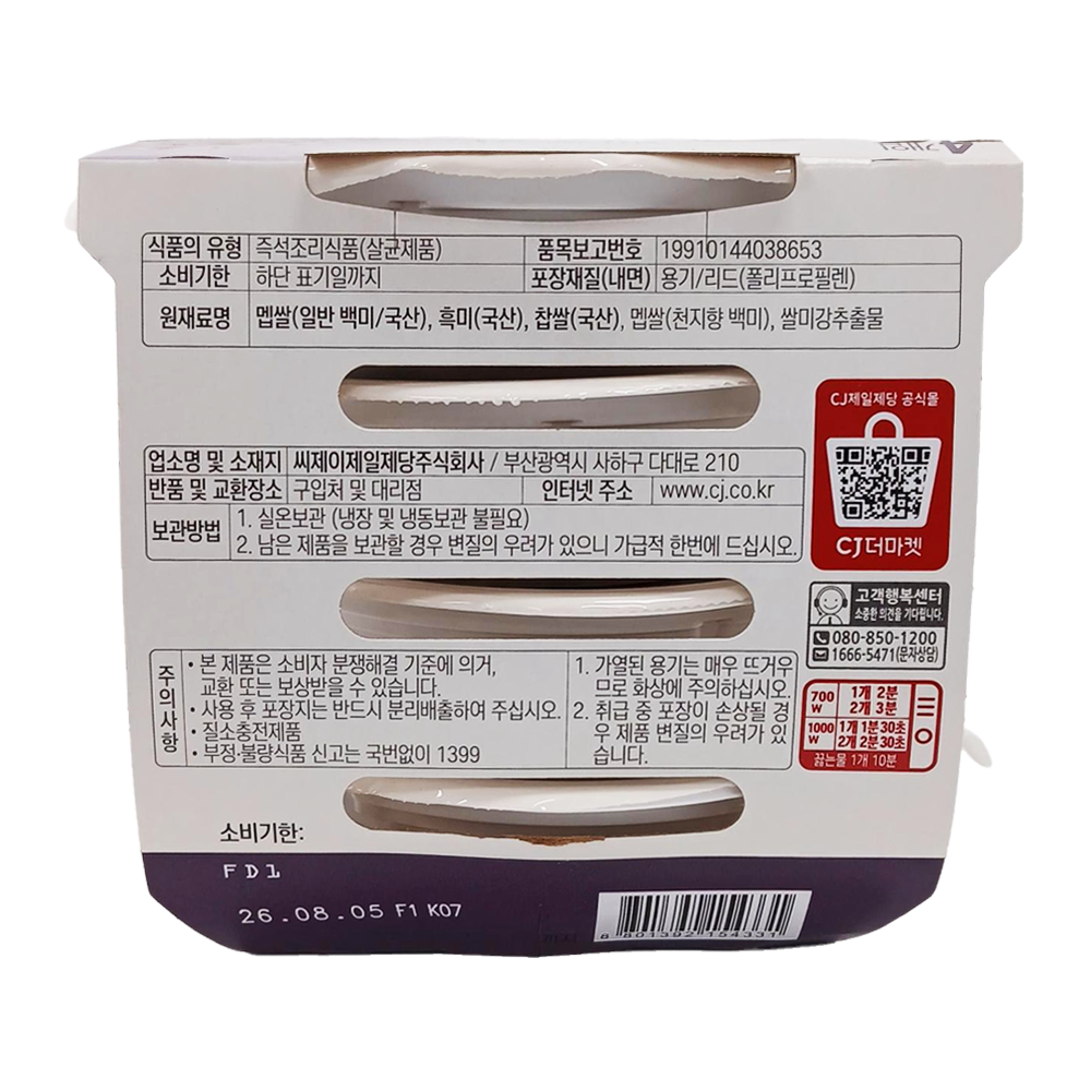 | 제품명 | NEW 햇반 흑미밥 210g*4입 /CJ |