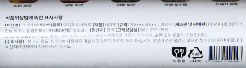| 제품명 | 고그린 위생롤백 30*40(200매) /하나로그린텍 |