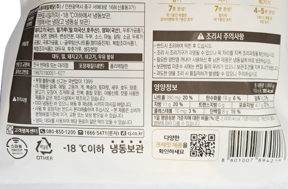 | 제품명 | 크레잇) 전문점 고기 왕교자 1.05kg/CJ |