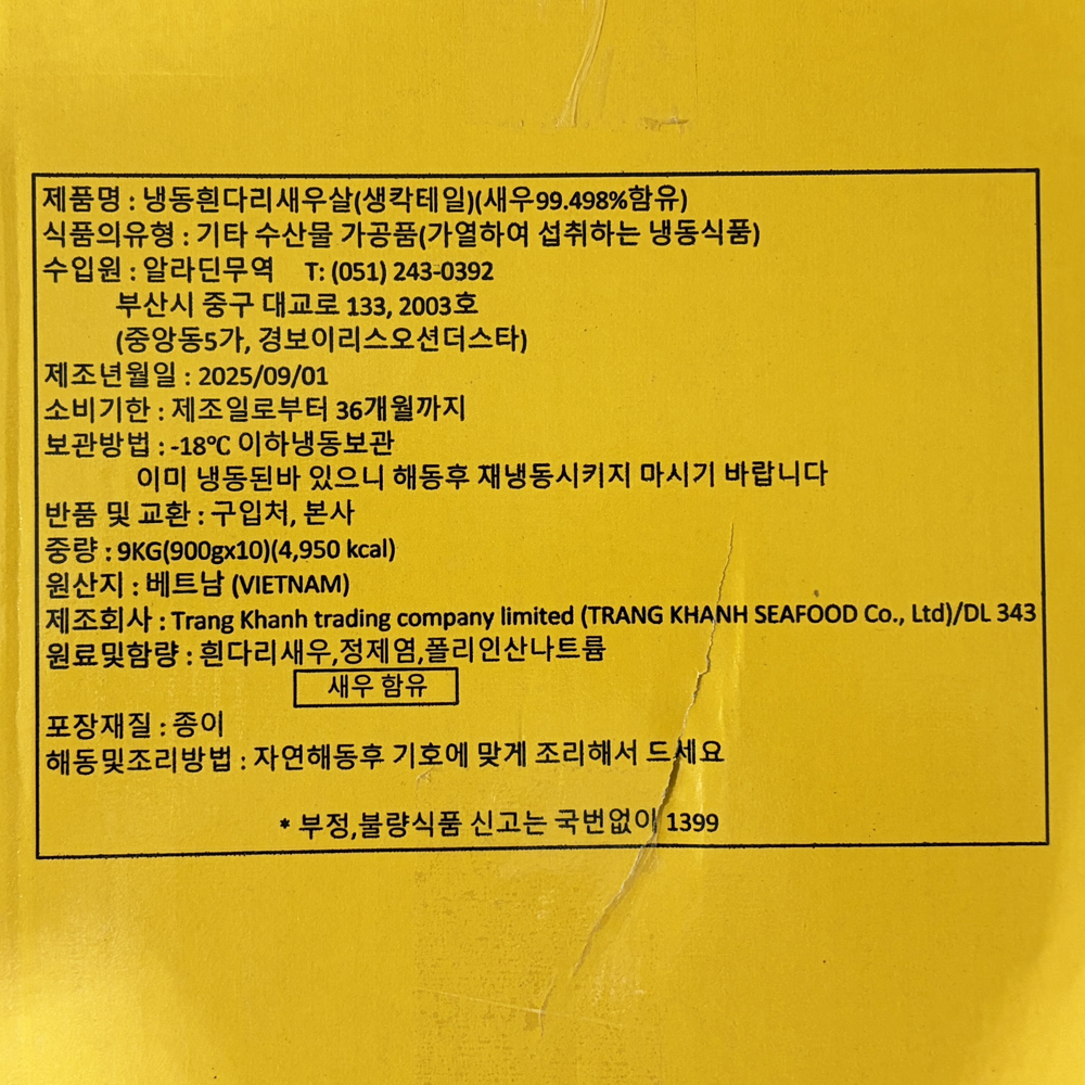 | 품목 또는 명칭 | Five Star 생칵테일새우 900g (16-20)/베트남산 |