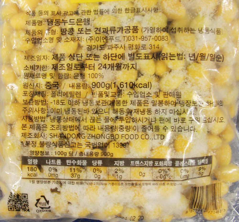 | 품목 또는 명칭 | 냉동 누드은행·900g(중국산)/이엔푸드 |