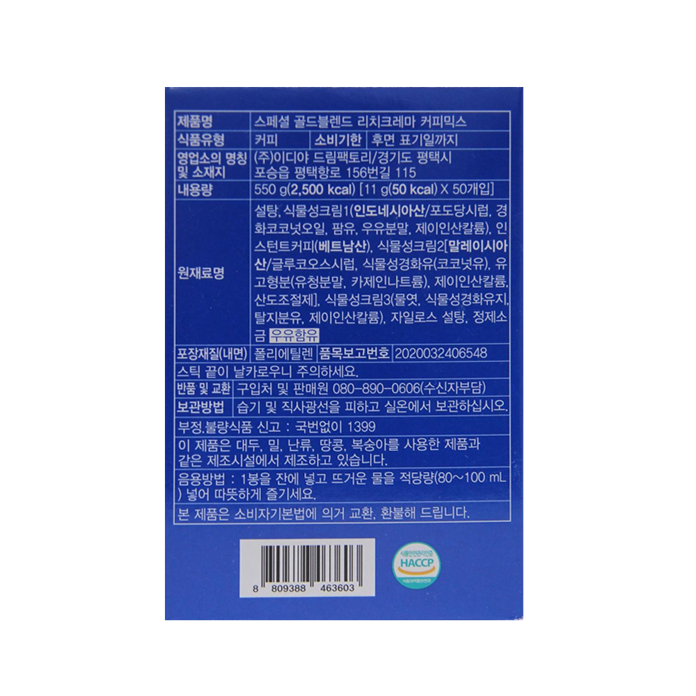 | 제품명 | 스페셜 골드블렌드 커피믹스 50T/이디야 |