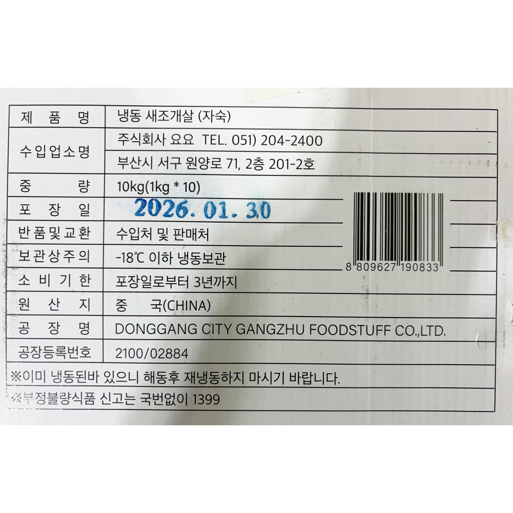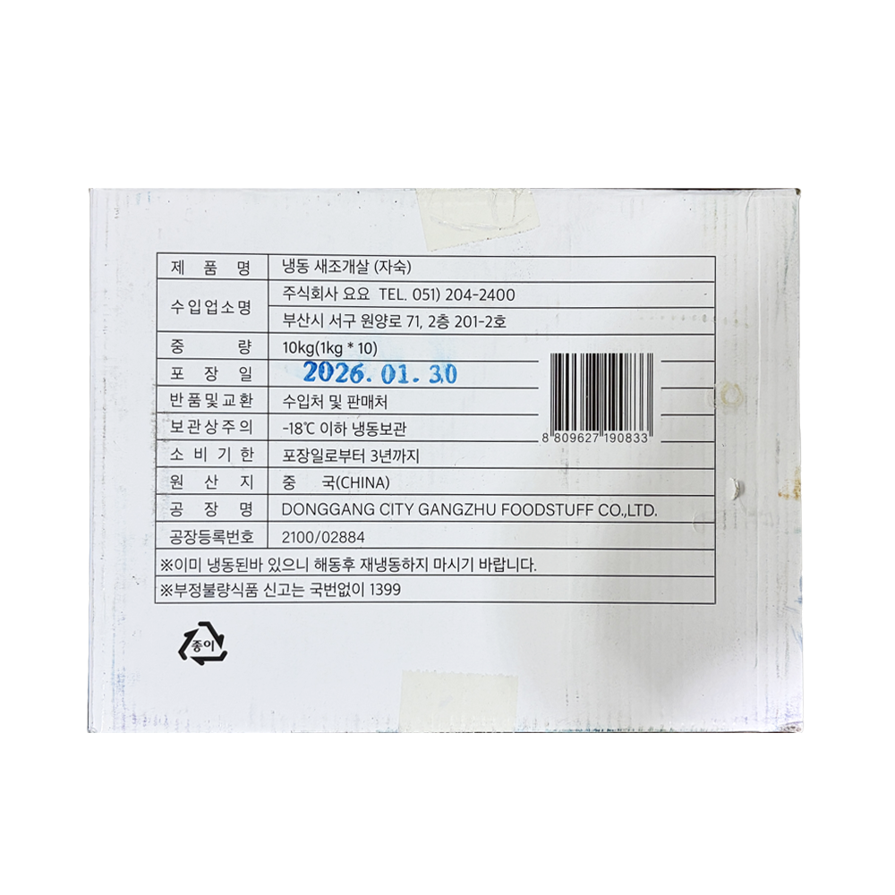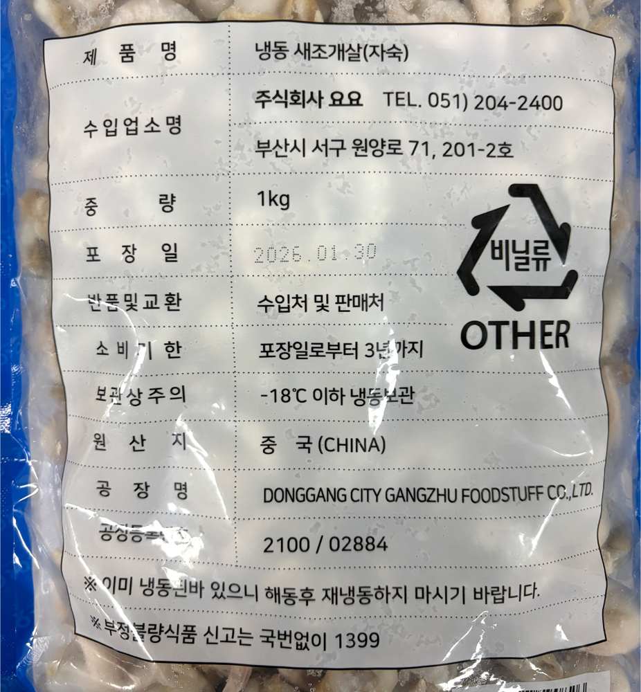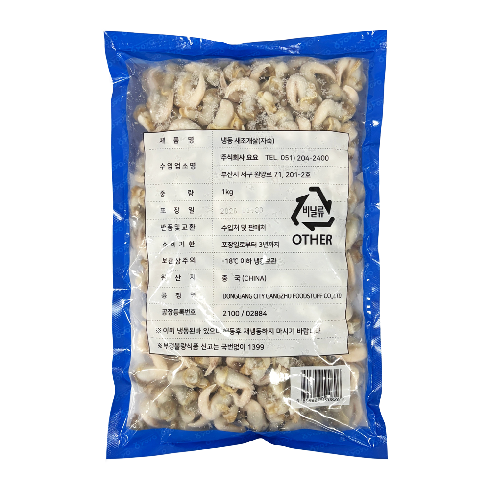 | 품목 또는 명칭 | 냉동 새조개살(자숙) 1kg/요요 |
