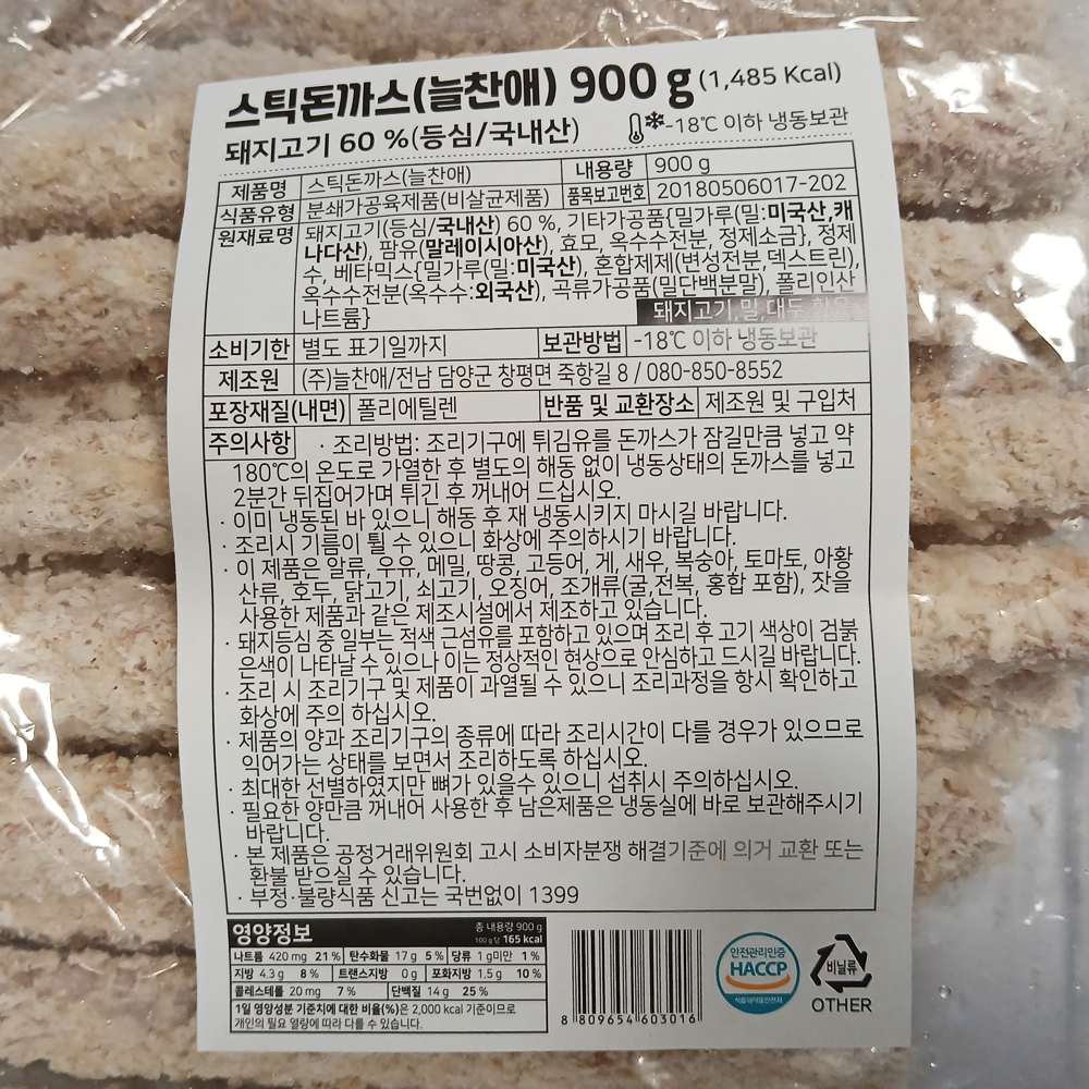 | 제품명 | 냉동 스틱돈까스 900g/늘찬애 |