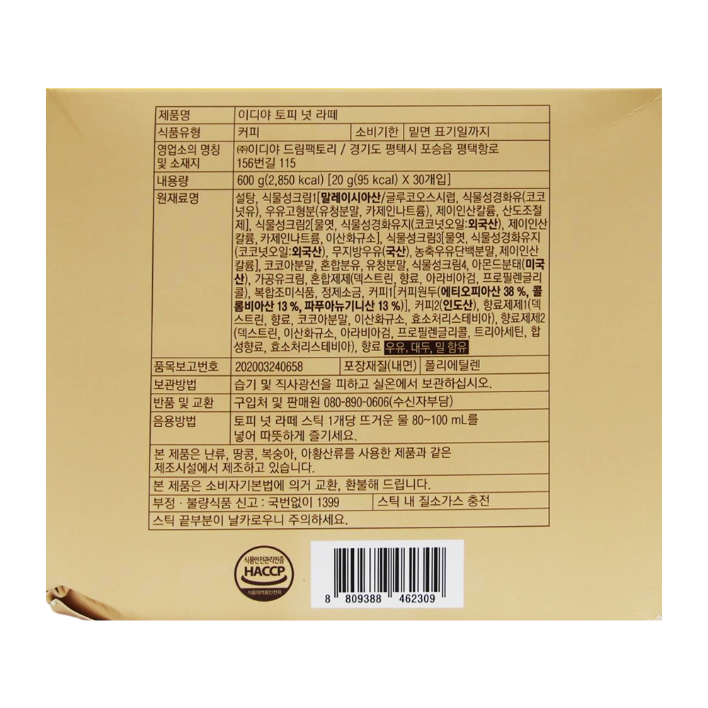 | 제품명 | 토피 넛 라떼 30T/이디야 |