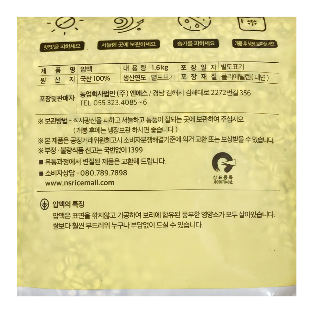 | 품목 또는 명칭 | 압맥·1.6kg/엔에스 |