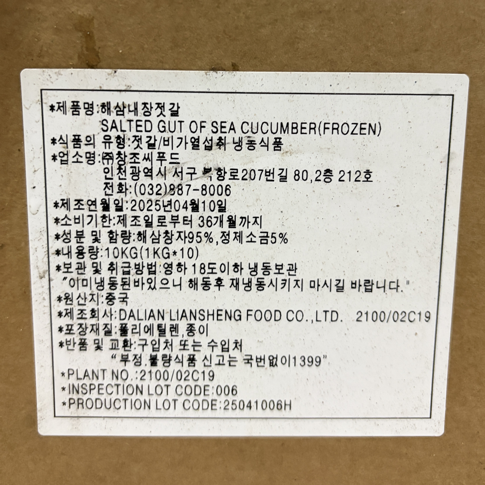 | 품목 또는 명칭 | 냉동 해삼내장1kg (고노와다)/창조씨푸드 |