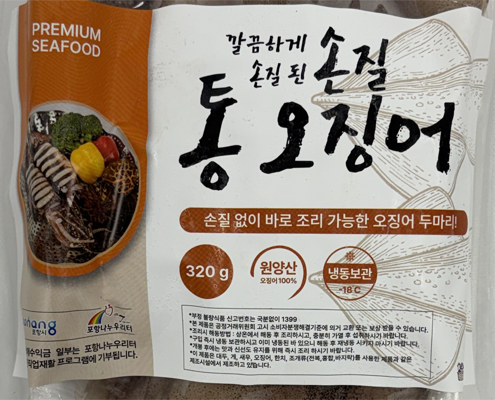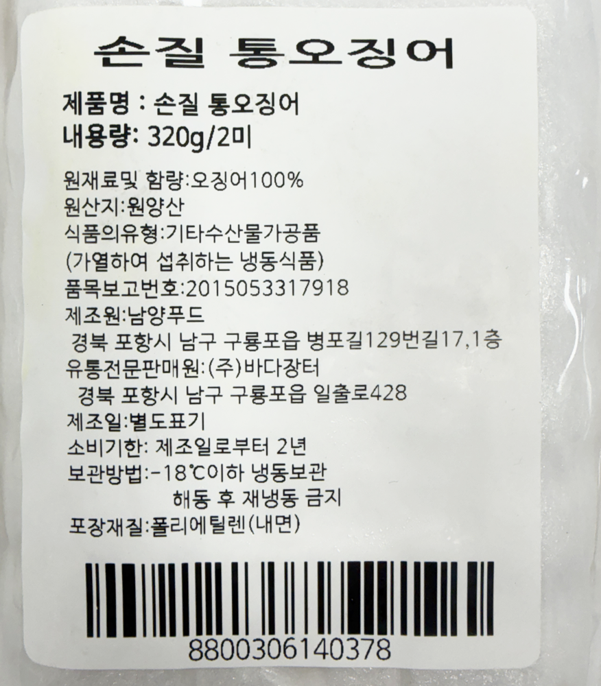| 품목 또는 명칭 | 손질 통 오징어 2미 320g/바다장터 |