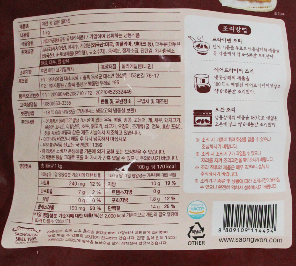 | 제품명 | 계란 옷 입은 동태전 1kg/사옹원 |