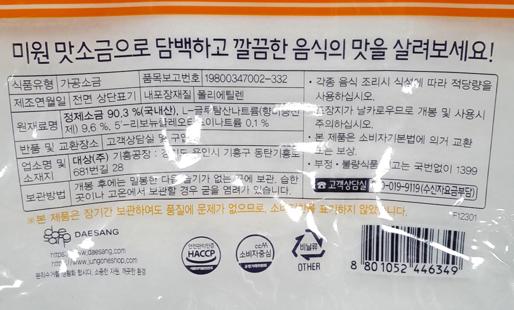 | 제품명 | 미원 맛소금 5kg/대상 |