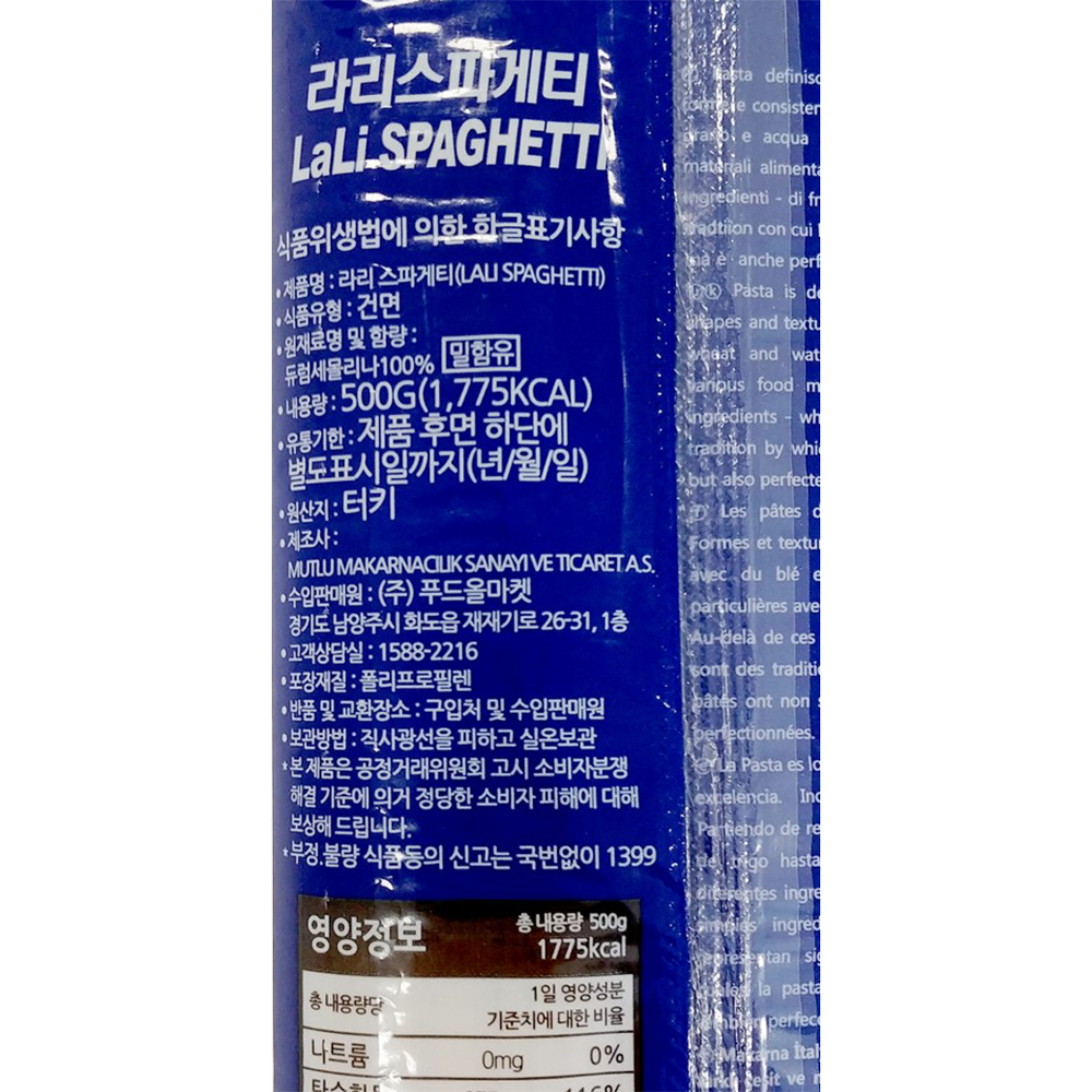 | 제품명 | 라리 스파게티면 500g/푸드올마켓 |