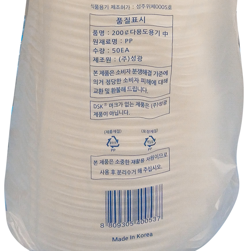 | 제품명 | (Set) DSK 200¢다용도용기(중) 50p/성광 |