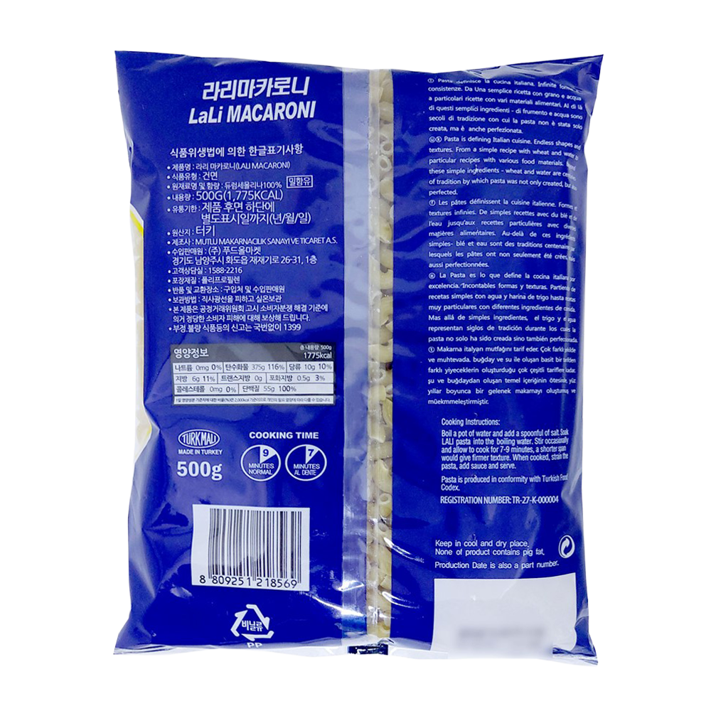 | 제품명 | 라리 마카로니 500g/푸드올마켓 |