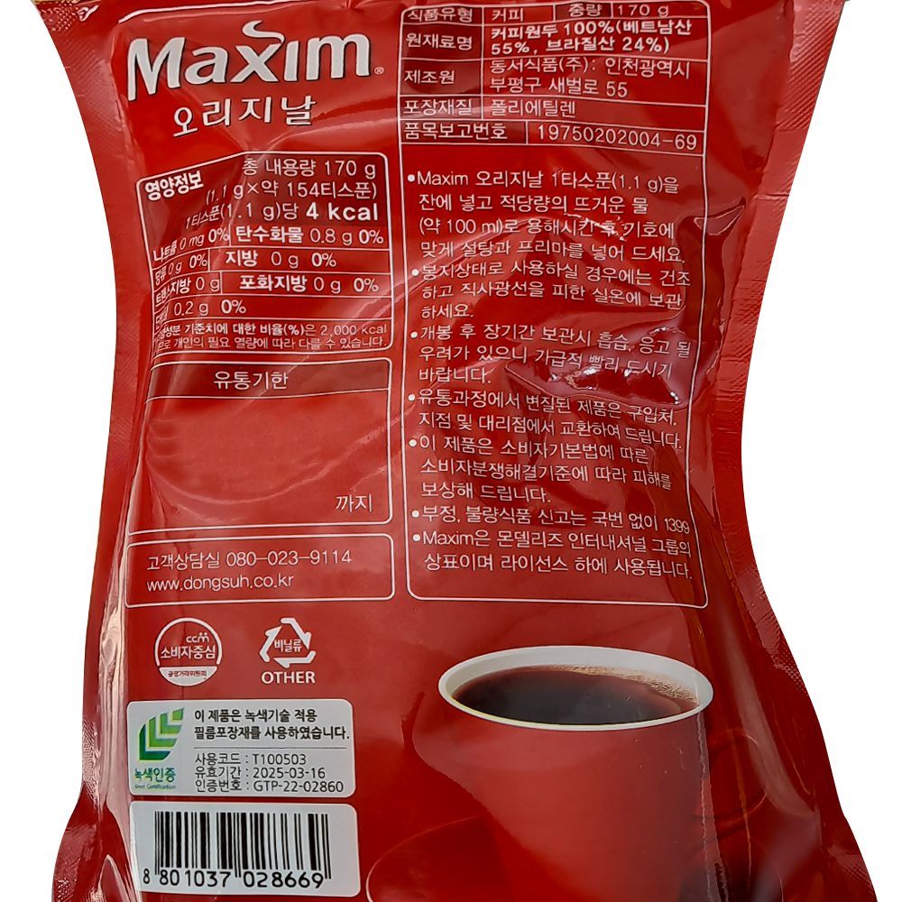 | 제품명 | 맥심·오리지날커피 170g/동서 |